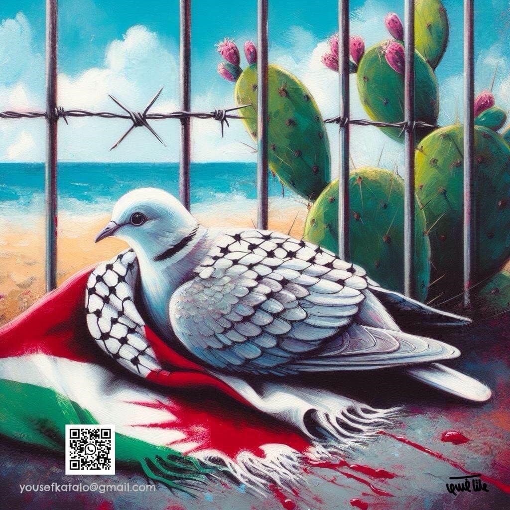 في كل بيت قُصف، في كل ذكرى مُحيت، في كل شجرة زيتون اقتلعتها الجرافات، في كل طفل مات قبل أن يتعلم نطق اسمه، وفي كل أمٍّ دفنت أبناءها بلا أكفان، في كل عائلة مُسحت من الوجود، واجتمعت في السماء، في كل خيمة نحملها على الظهر، نغرسها في البحر او في الرمل ولا نرحل، في كل زنزانة توحّشت بالتعذيب والاعدامات، في مطلع كل فجر، يؤذن للصلاة، ويقرع الاجراس.